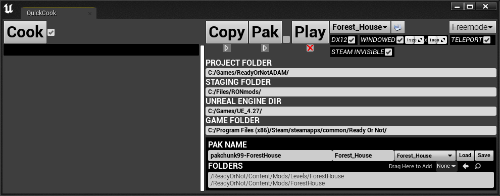 To modify an existing staged folder simply make sure your cooked copy of/Content/is inside a/ReadyOrNot/folder.